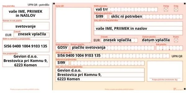 Če boš vplačala / vplačal preko položnice